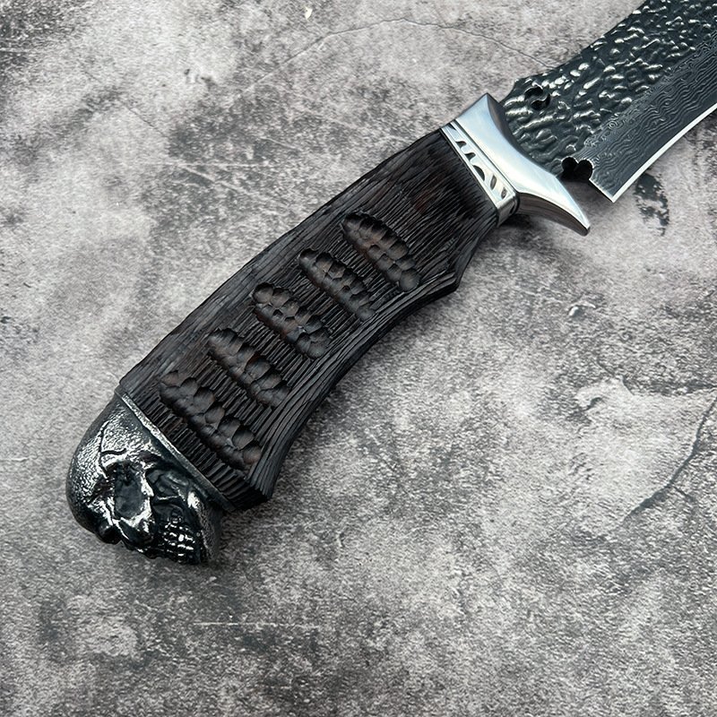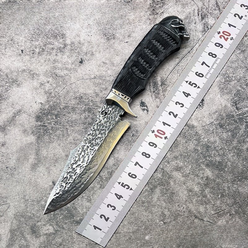 Black Skull Damascus Damascus Forged Knife Steel Outdoor Straight Knife – Camping & Portable