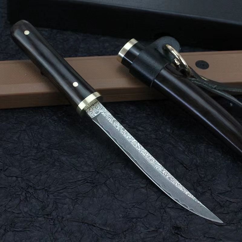 Longlin Damascus steel knife, hardness and sharpness, outdoor straight knife