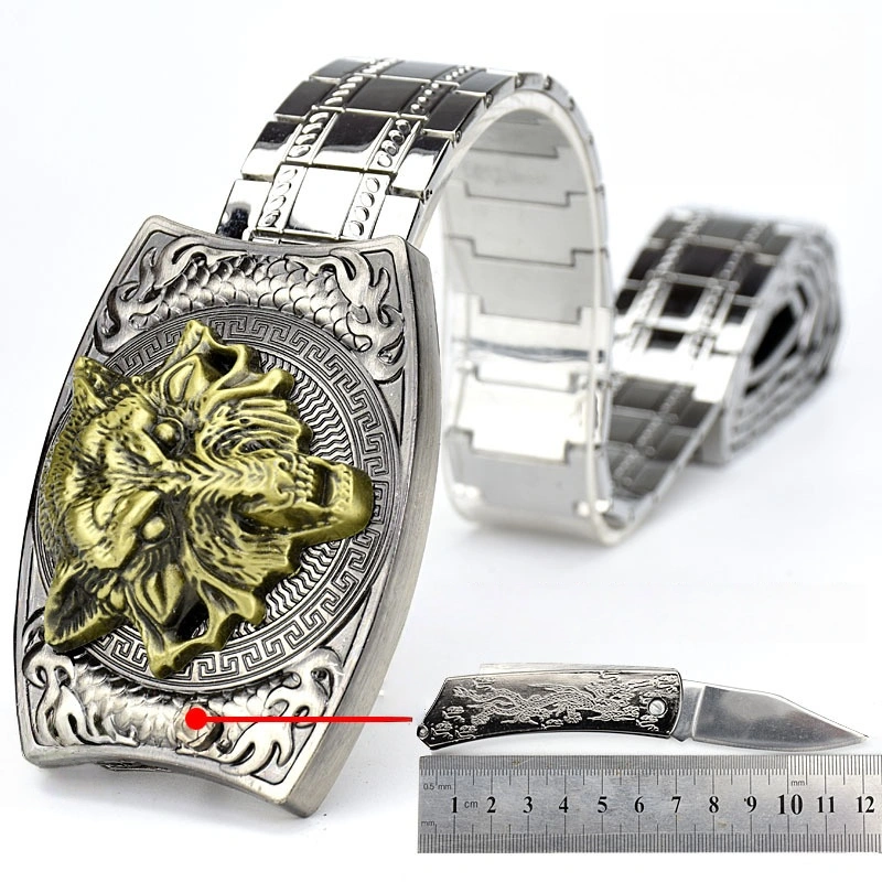 New stainless steel wolf head belt buckle knife