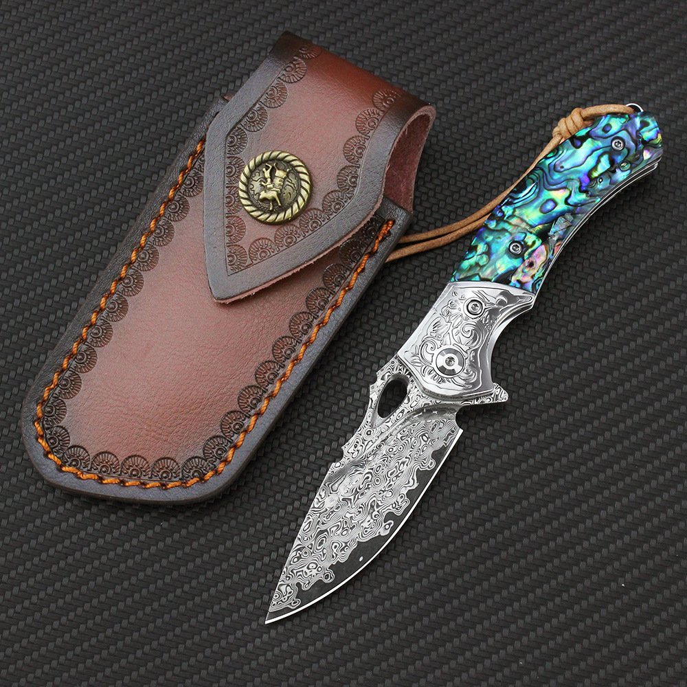 Outdoor knife 305 high hardness sandalwood handle 76 layer Damascus color shell handle folding knife