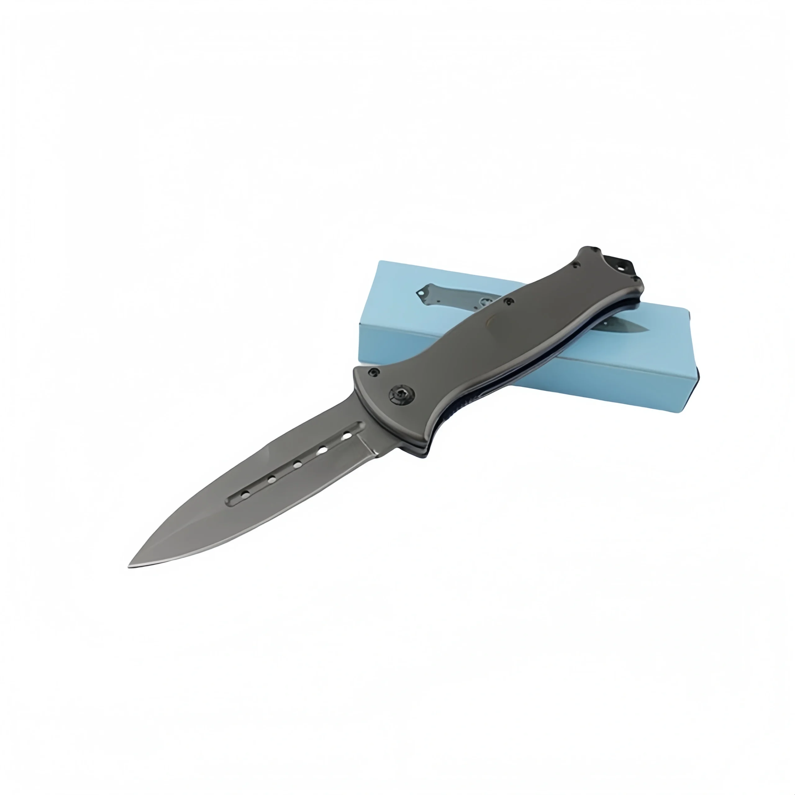 This tactical pocket knife perfectly balances rugged style with everyday practicality. Its grey stainless steel blade with precision-cut vents reduces weight and enhances its tactical aesthetic, making it built for high performance anytime, anywhere.