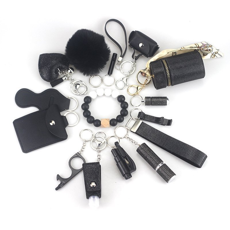 Womens Safety Items 15-Piece Self-Defense Keychain Black